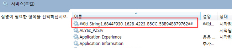 그리고 서비스 상태를 [중지]하고 시작유형을 [사용안함]으로 변경하여 위처럼 삭제를 시도합니다